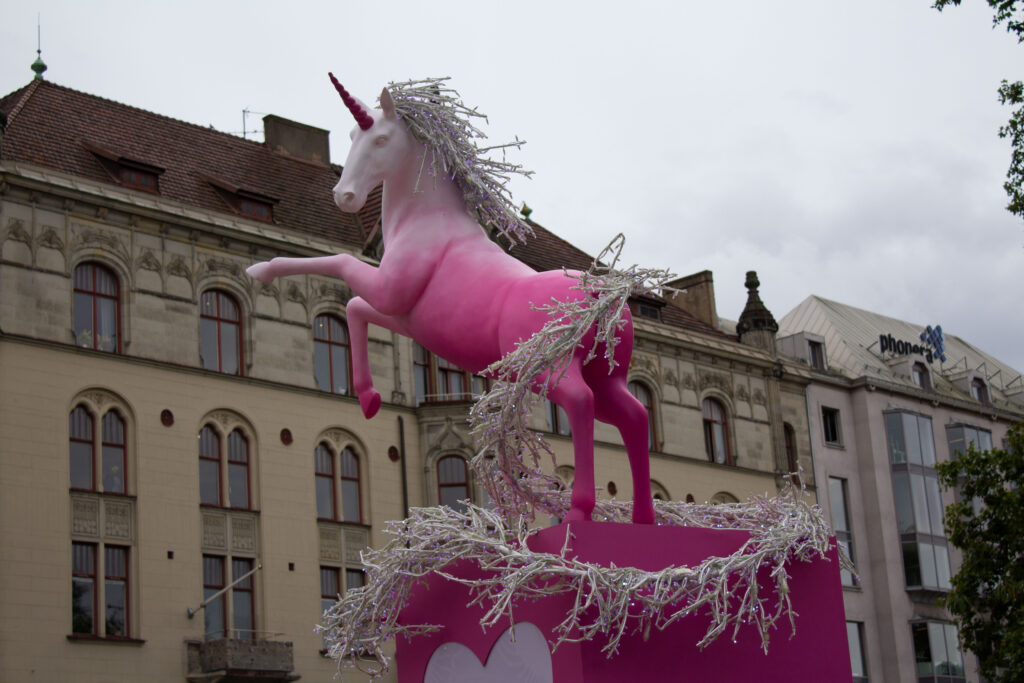 På Gustav Adolfs torg i Malmö står det nu en flera meter hög enhörningsstaty. Foto: Felicia Green