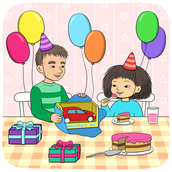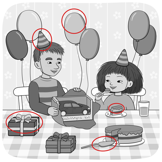Lyssna Läshastighet: Långsam Vanlig Hög Finn Fem Fel nr 18 Läs och lyssna på bildserien Mino fyller år!