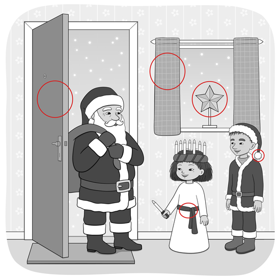 Lyssna Läshastighet: Långsam Vanlig Hög Finn Fem Fel nr 50 Läs och lyssna på bildserien Minja, Mino och julen.