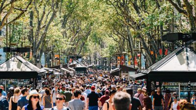 Människor protesterar mot för många turister
